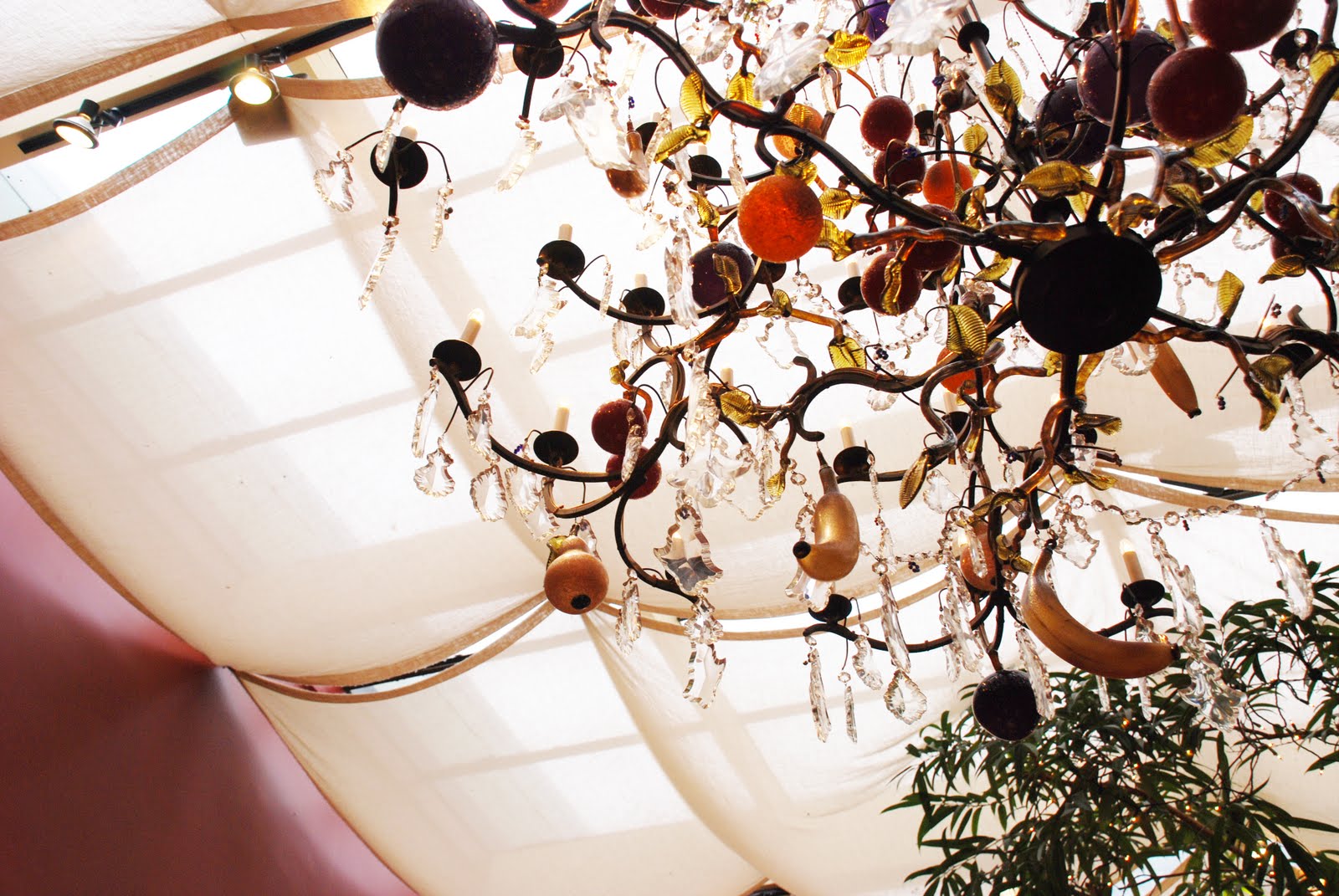 This is the atrium of our favorite restaurant. Yes, that is fruit hanging from the chandelier. Mmmm ... yummy! Hugs to you all. xox=vv.